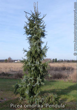 This narrow evergreen is conical in shape with pendulous, stiffly held, weeping branches. The central leader remains upright and does not need staking.  Needles are dark green on the topside, silver-blue underneath. An interesting and unique specimen in any landscape.
